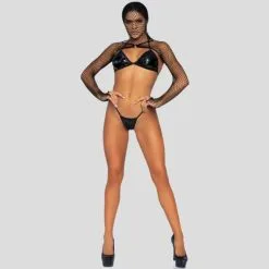 3PCS BIKINI VINYLE + TOP CAGOULE RÉSILLE