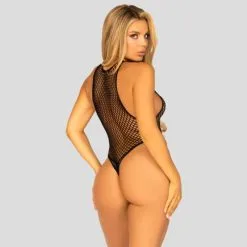 BODYSTOCKING RÉSILLE COL + DOS NU NOIR