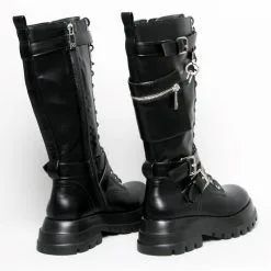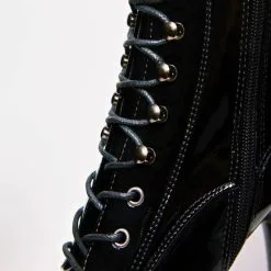 BOTTINES VINYLE NOIR PLATE FORME LACET