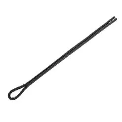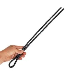Badine composée de 3 brins tressés recouverts de latex noir et repliée de sorte à former une boucle ainsi que deux embouts