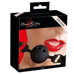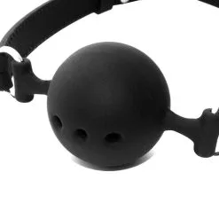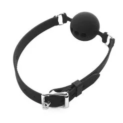 Bâillon boule tout en silicone avec boucle en métal.