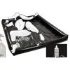 Un cadenas en métal avec clé est fournie, ainsi que des cadenas plastique à usage unique. Vous pouvez de cette façon, facilement fermer la cage. Les cadenas en plastique garantissent que l’alarme des capteurs de métaux ne sera pas déclenchée si vous prenez l’avion, ou passez dans n’importe quel portique de sécurité.