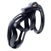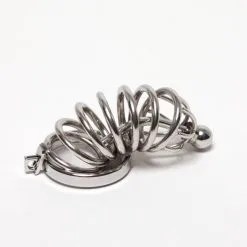 La cage est constituée de tiges métalliques courbées. Le + de cette cage se situe au niveau de la tige urétrale soudée à la cage, dont l’embout est rond et creux permettant ainsi de se soulager sans retirer la cage. La tige est incurvée, suivant la courbe de la cage.
