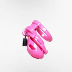 Cage de chasteté en polycarbonate rose de qualité médicale, au design léger et confortable.