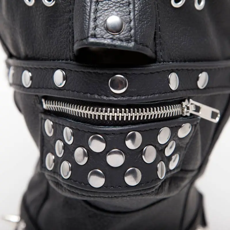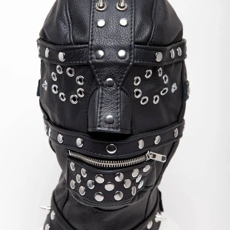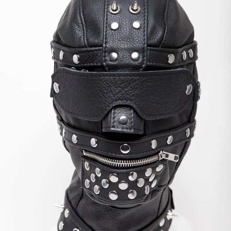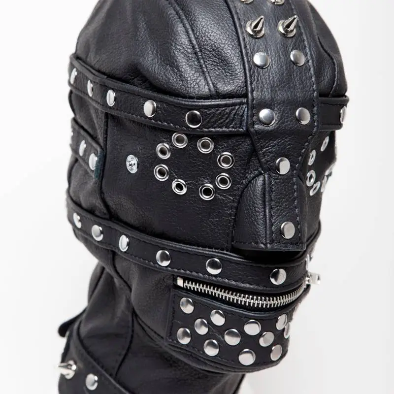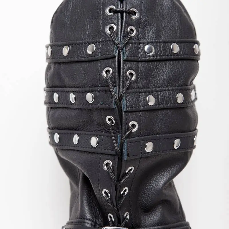 Superbe cagoule en cuir de très bonne qualité, souple, pour apporter une touche mystérieuse et énigmatique à vos jeux de rôles SM.