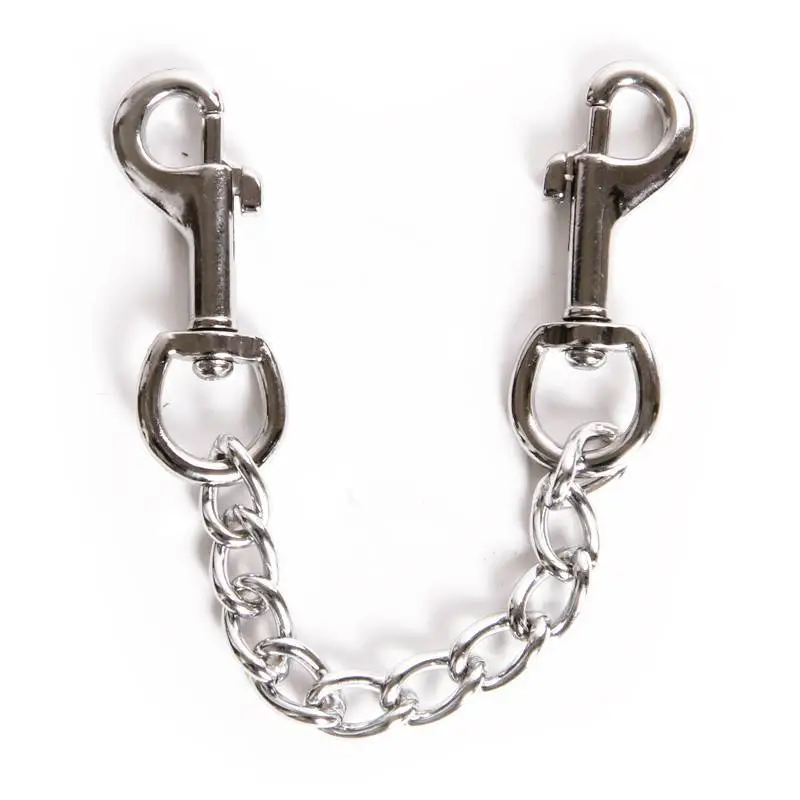 Elle est dotée de 2 mousquetons également en métal, 1 à chaque bout de la chaîne.