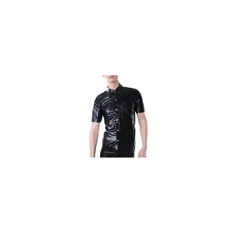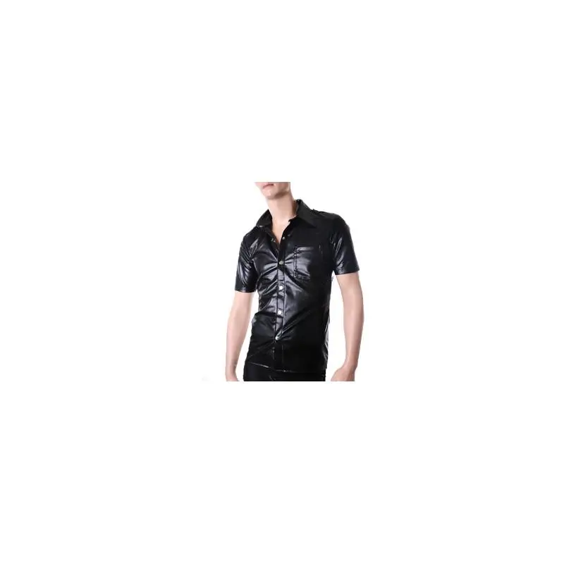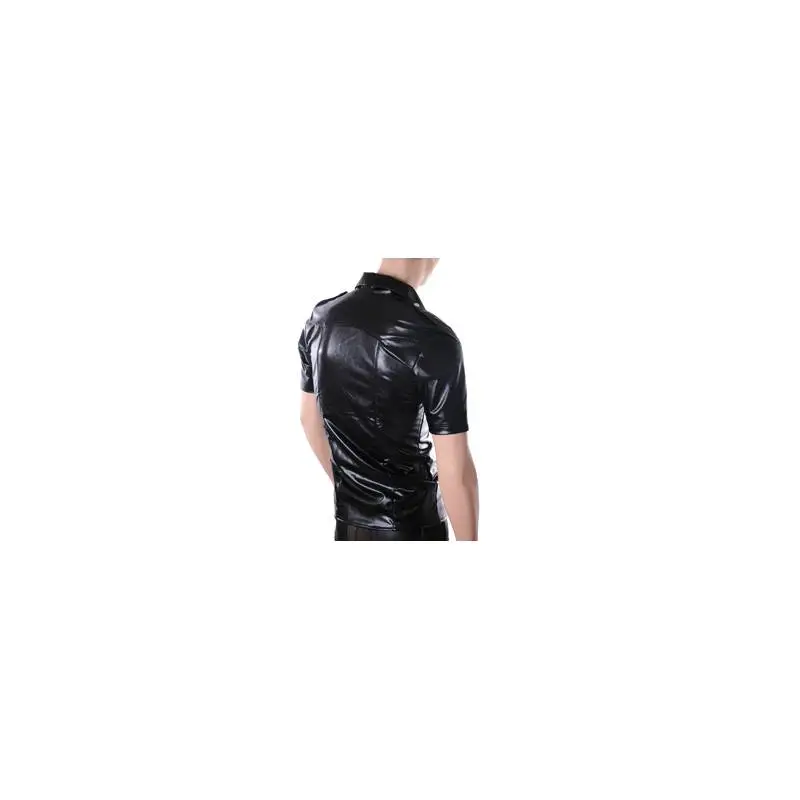 Chemise homme en wetlook, manche courtes, dans le style uniforme. Système d’ouverture par des boutons pressions et col classique, cette chemise est dotée d’une poche au niveau de la poitrine et d’épaulettes.