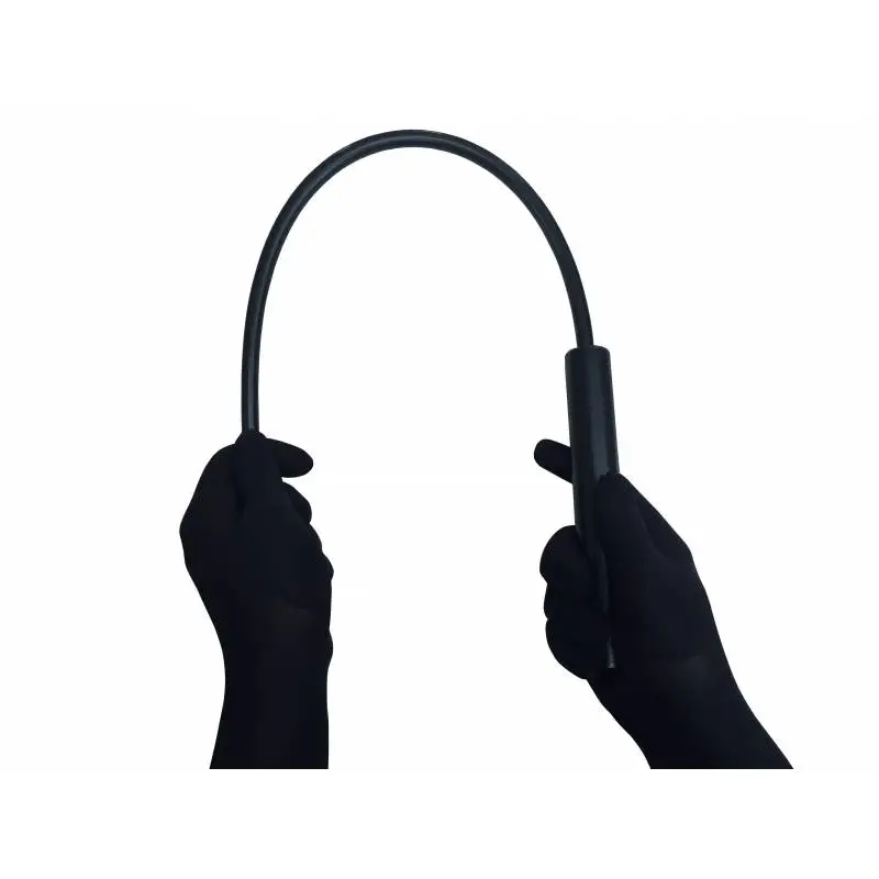 Badine en pvc noir légèrement flexible et manche en bois