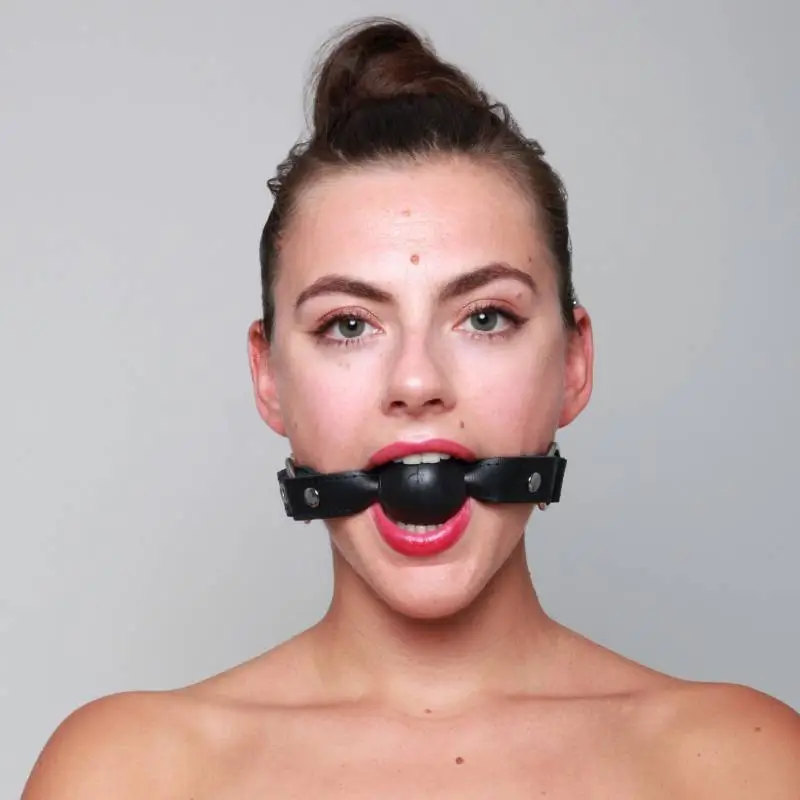 Très joli baillon boule avec lanières en cuir souple et boule pleine en silicone à la fois souple et compact. Les lanières sont rivetées sur des anneaux au baillon.