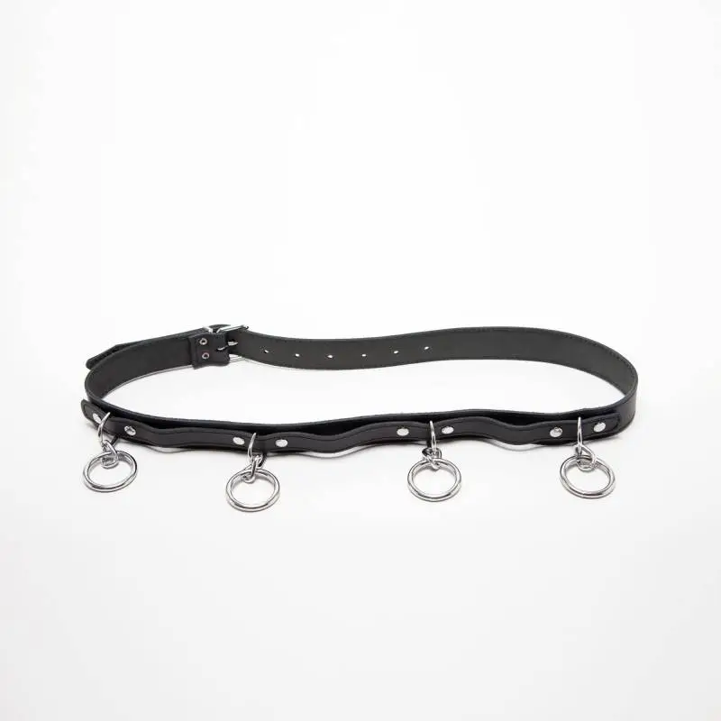 CEINTURE BONDAGE CUIR NOIR ANNEAUX