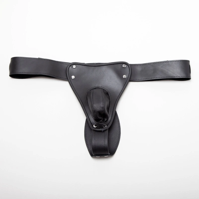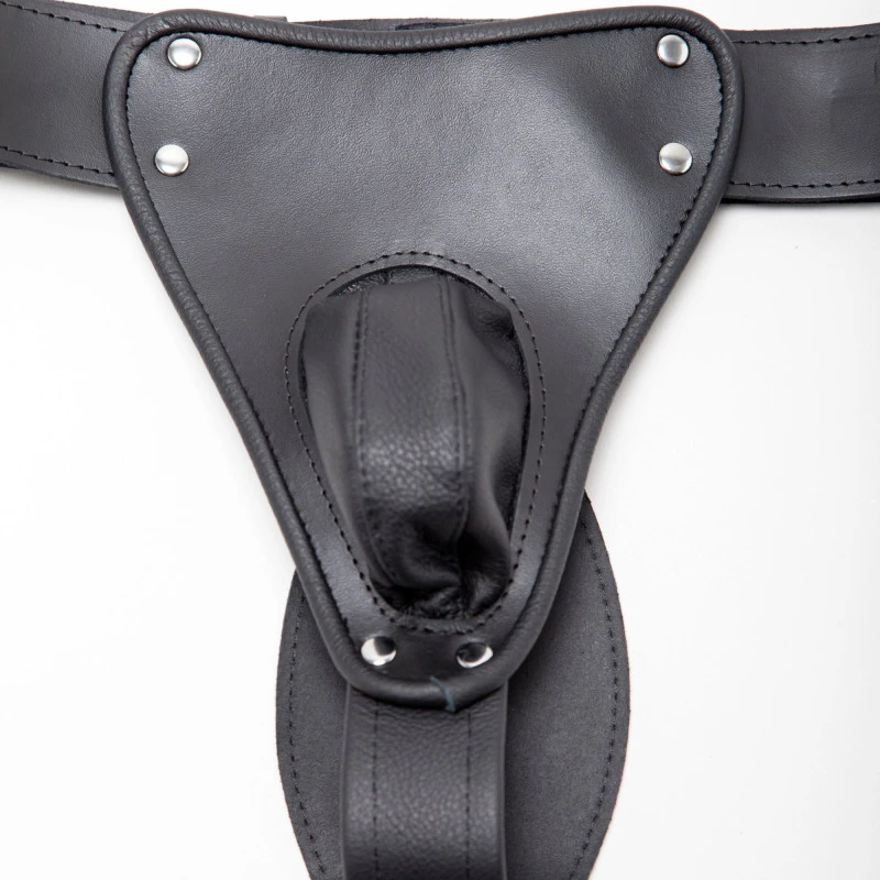 ATTENTION poche pour le sexe en cuir souple sans ouverture. Idem derrière. La pièce de cuir n’est pas amovible.