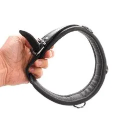 Collier en cuir noir légèrement molletonné avec rembourrage sur les bords pour un maximum de confort. Une « sur » lanière cousue au collier et contenant 12 trous avec boucle permet un maintien parfait quelque soit votre taille de cou.