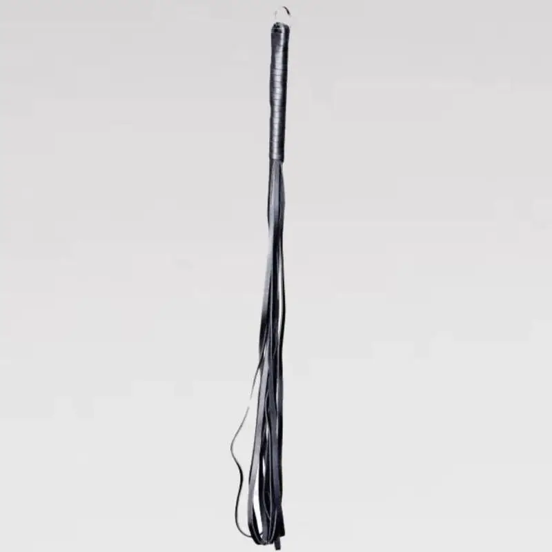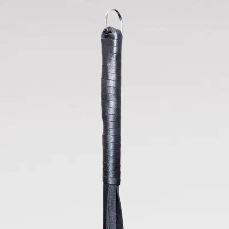 Martinet en cuir dur noir avec manche également en cuir.