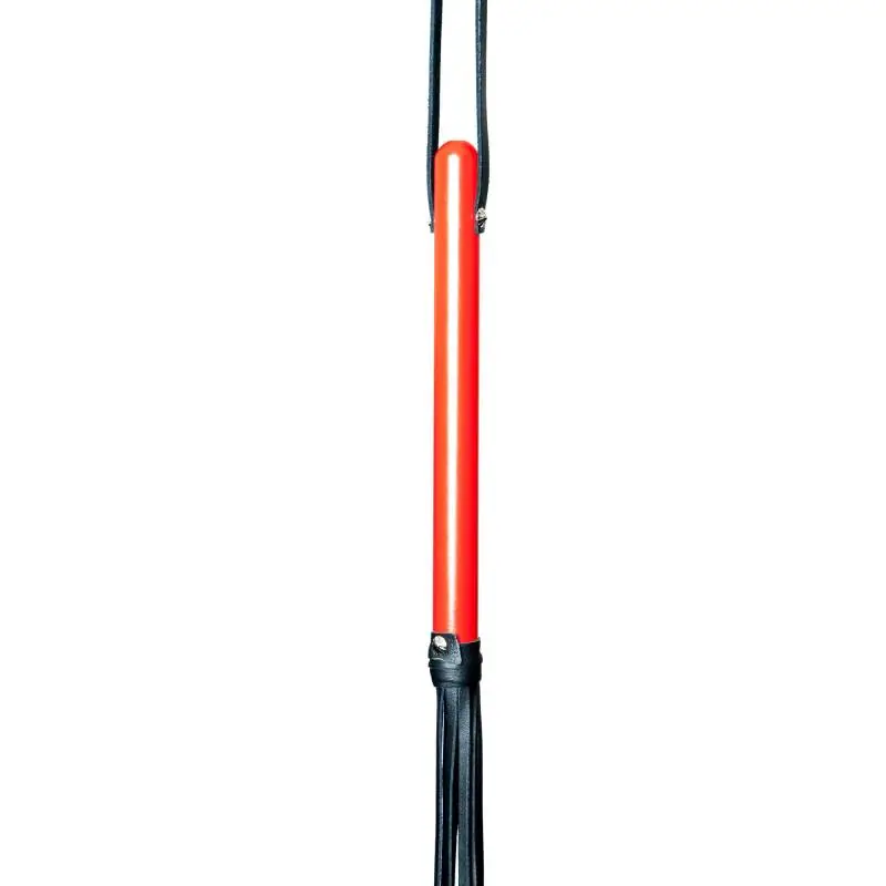 Martinet manche rouge avec 11 laniĂšres en cuir dur noir.