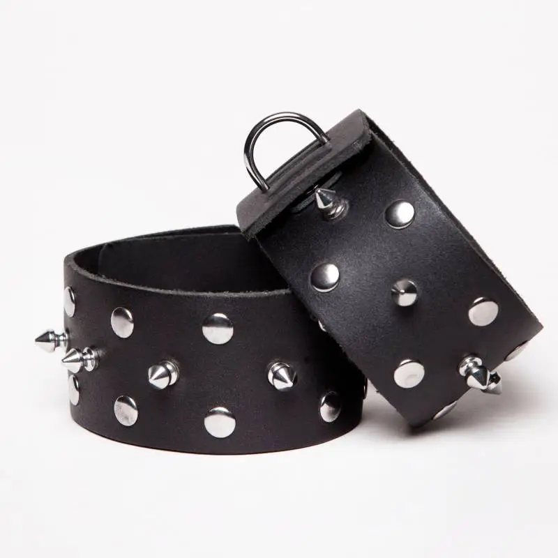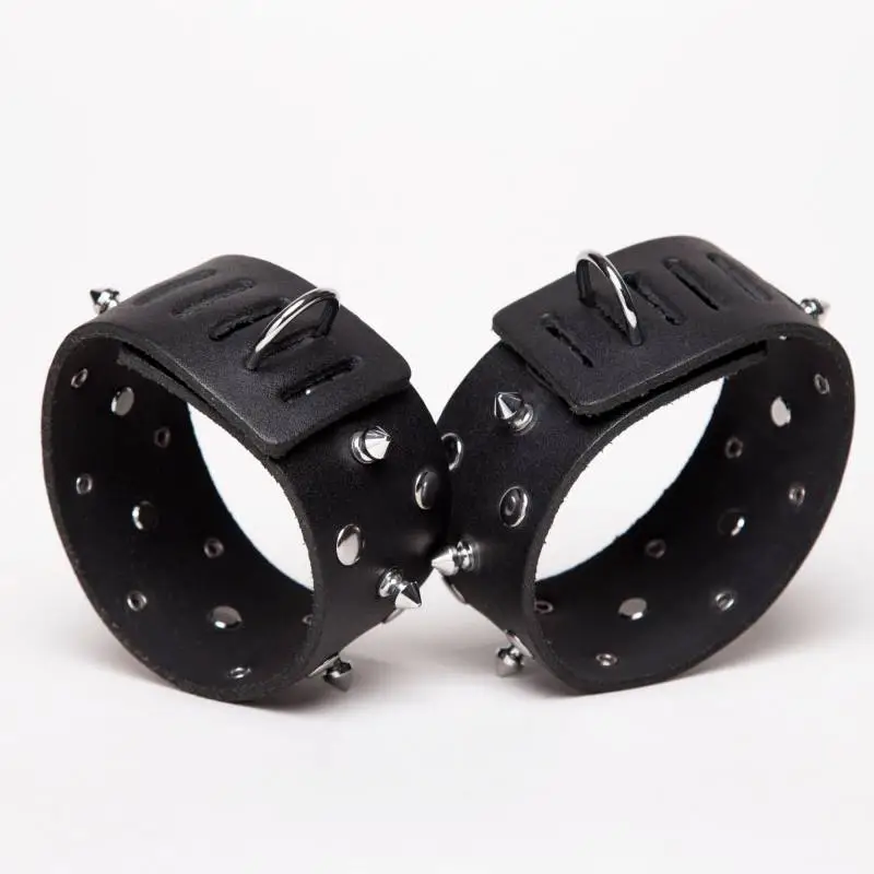 Chevillères en cuir noir Ă©pais qui ont la particularitĂ© d’ĂŞtre cadenassables (cadenas non fourni – voir produits associĂ©s).