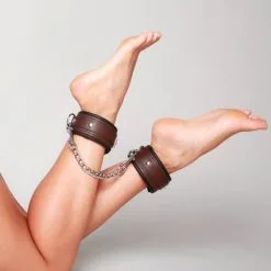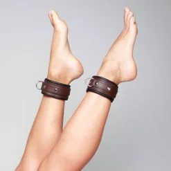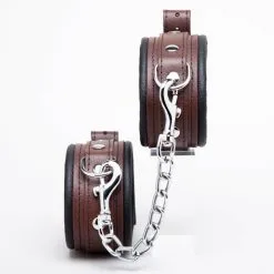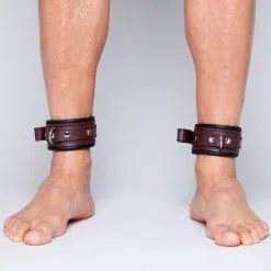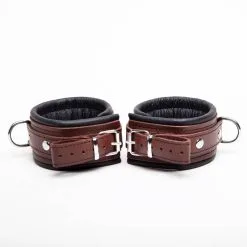 Chevillères en cuir marron de très bonne qualité avec « sur » lanières rivetées et anneau métal, de la « collection DEMONIA ».