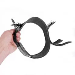 Contraintes en cuir souple de qualitĂ© permettant d’accrocher ensemble la cuisse et le poignet.