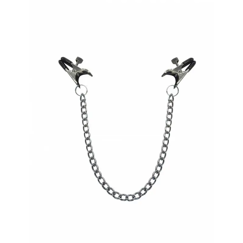 Pinces à seins larges et réglables reliées par une belle chaine en acier.