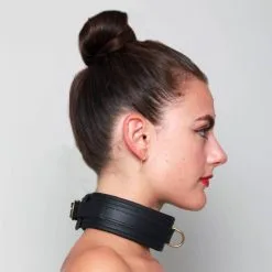 De très bonne qualité, ce collier en cuir de la collection Dèmonia, comprend un anneau en métal doré avec sur lanière ainsi qu’une doublure en cuir pour plus de confort et de praticité durant tous vos jeux SM.