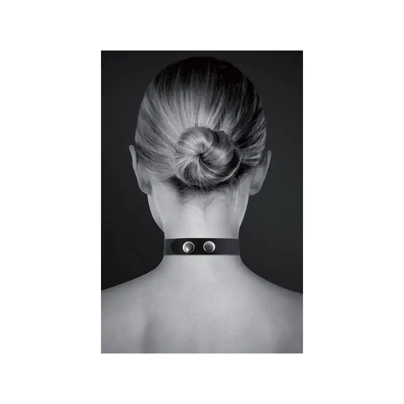 Joli collier SM en cuir noir. Réglage par bouton pression.