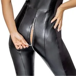 Cuir (nappa d’agneau) ; empiècements stretch 95% polyamide, 5% élasthanne.