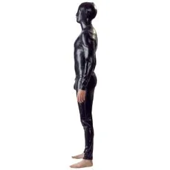 Le costume intégral est fait d’un matériau brillant et très élastique, légèrement transparent, qui permet une perception de l’environnement dans l’ombre.