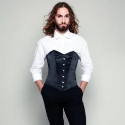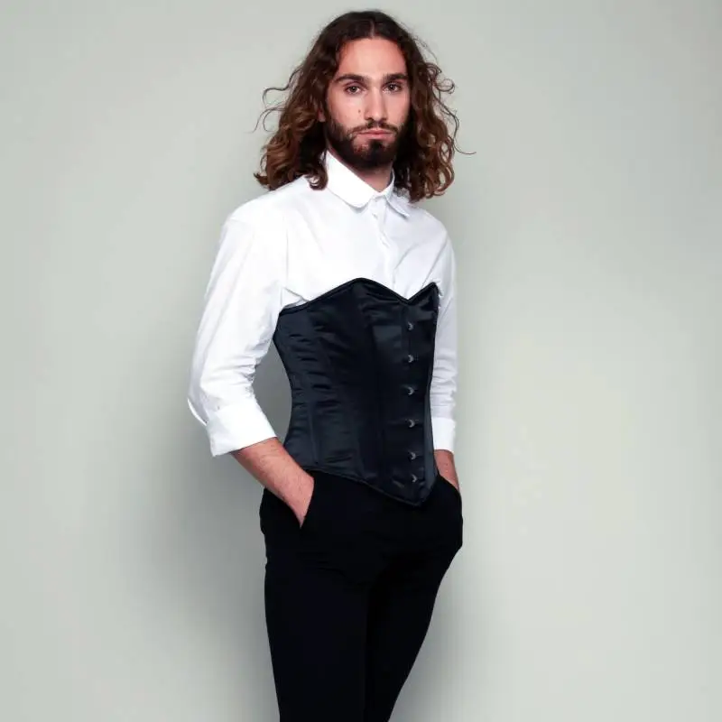 Corset en satin de bonne qualitĂ©, avec baleines de maintien. Sur l’avant, de discret crochets d’attache, sur l’arrière un lacet dotĂ© d’un rabat pour couvrir la peau.