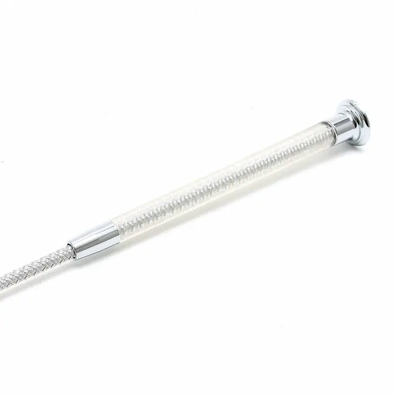 Belle cravache avec manche doté de 2 embouts chromés, en silicone transparent trÚs confortable avec une parfaite prise en main!