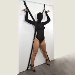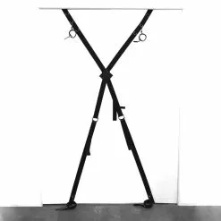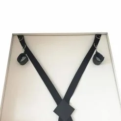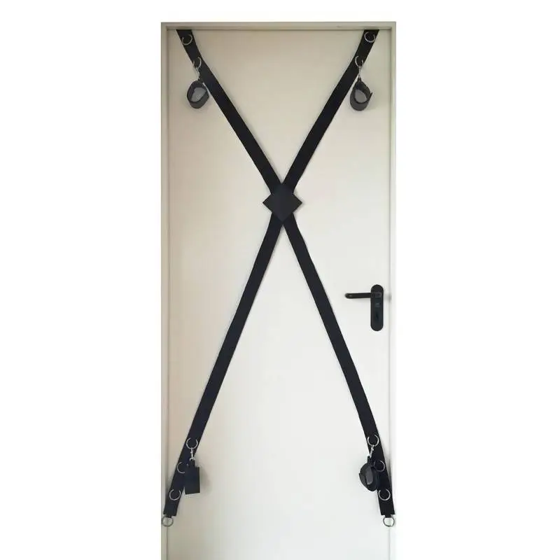 Cette croix de Saint-AndrĂ© en nylon pour porte comprend 4 menottes/chevillères chacune dotĂ©e d’un mousqueton pour l’accrocher Ă l’anneau de votre choix, situĂ© sur la croix.