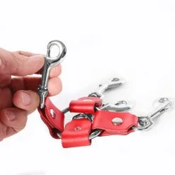A l’extrĂ©mitĂ© de chaque lanière, vous disposerez d’un mousqueton d’accroche.