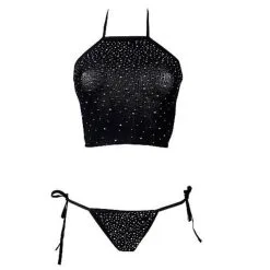 ENSEMBLE NOIR CULOTTE+TOP STRASS
