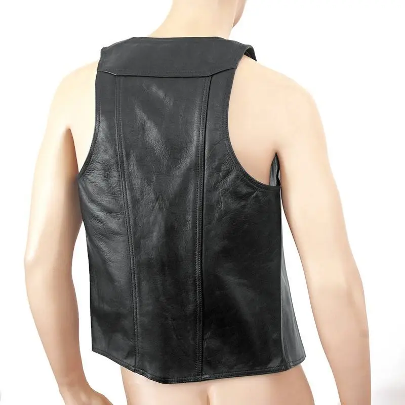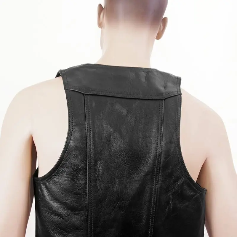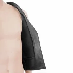 Gilet en cuir noir de grande qualité, doté de larges ouvertures au niveau des bras.