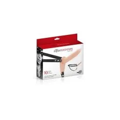 Gode ceinture vibrant couleur chair avec un gode externe à la texture très soft.