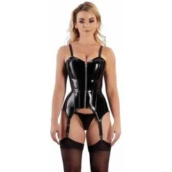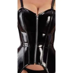 Simple et efficace cette guêpière vinyle noire. réglable dans le dos par un lacet permettant d’être la plus ajustée possible.