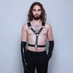 Harnais buste en cuir pour homme avec lanières rivetées.