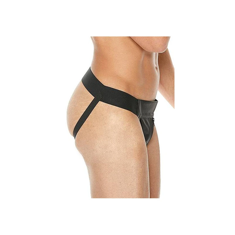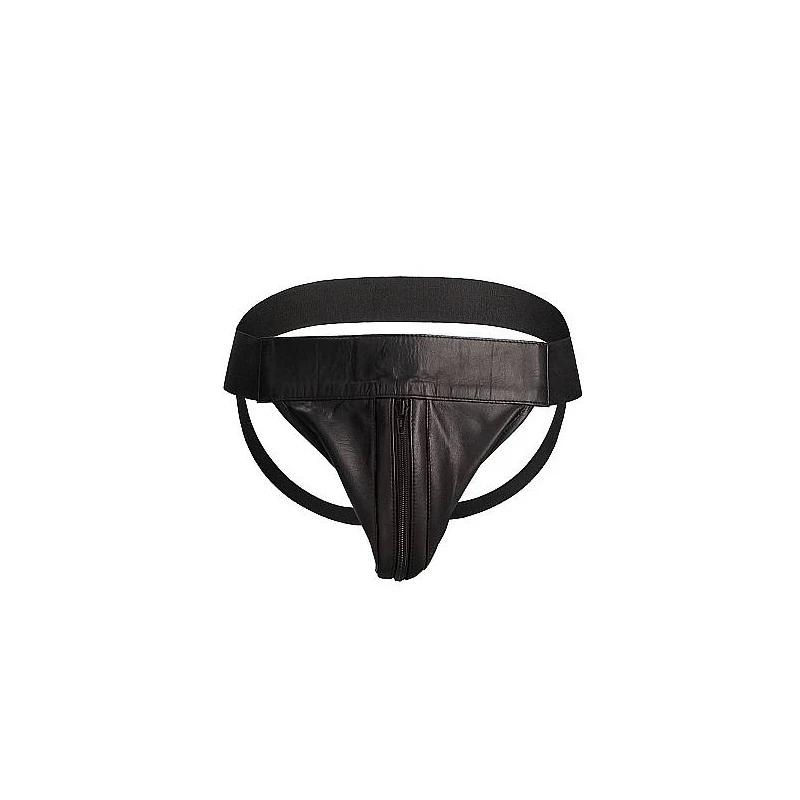 Ce jockstrap en cuir a une ceinture Ă©lastique assurant un maintien parfait ainsi qu’une fermeture Ă©clair fonctionnelle sur la partie avant pour un accĂšs facile.