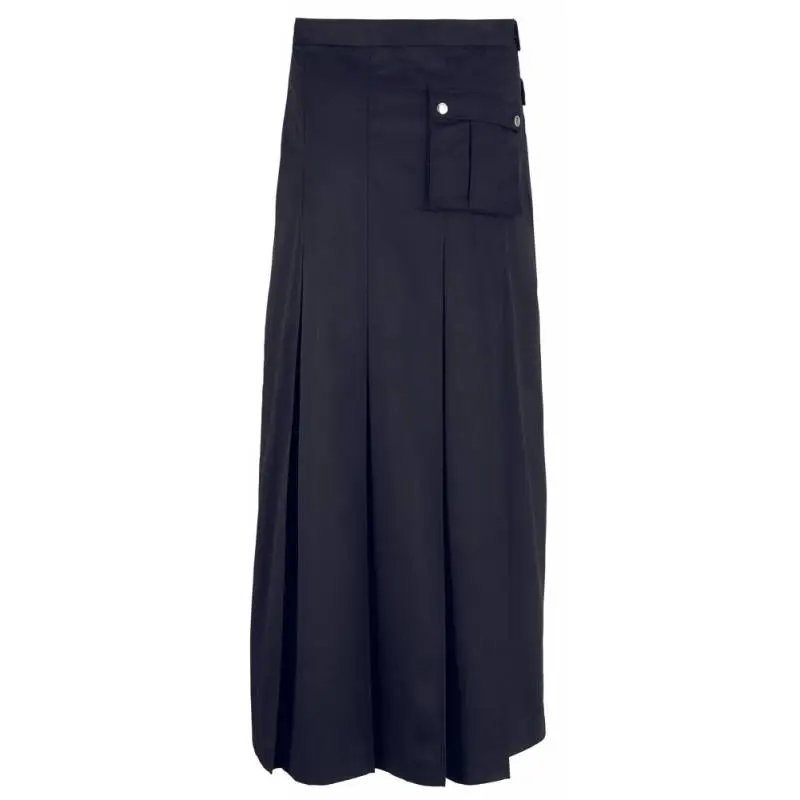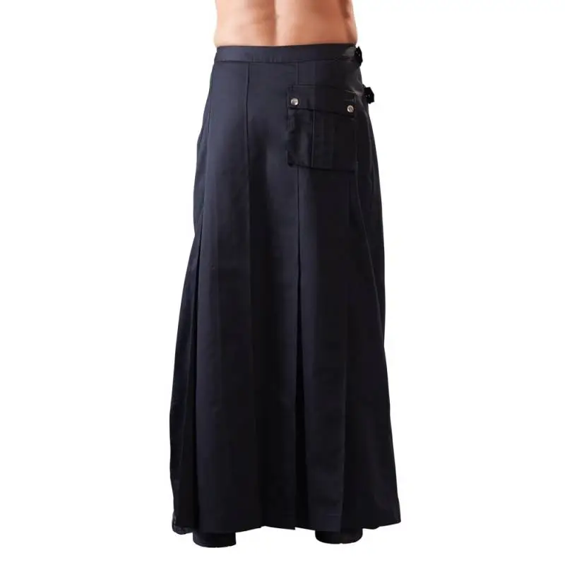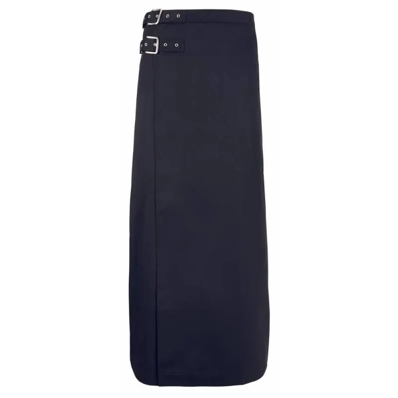 Jupe portefeuille Ă longueur de plancher avec fermeture velcro et 2 bretelles avec boucles.