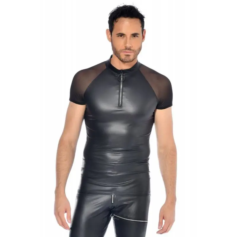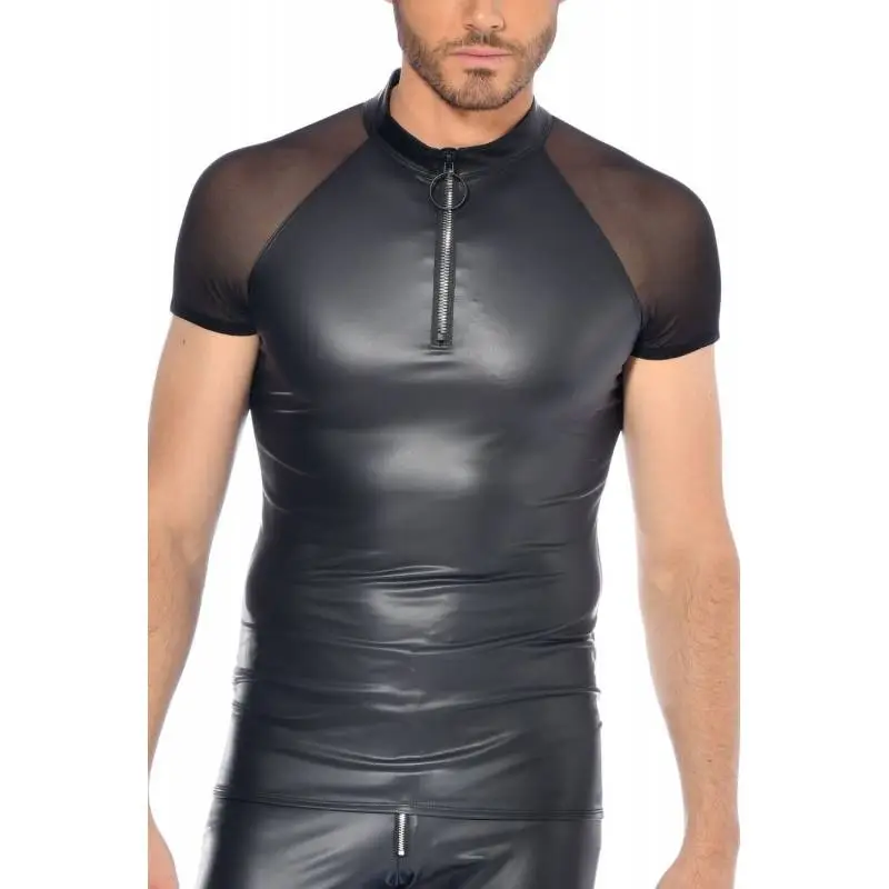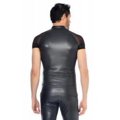 Tee shirt moulant en wetlook avec manches courtes en voile.