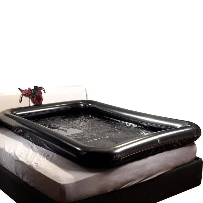 Ce drap en vinyle noir (200cm x 140cm – 100% Vinyle) avec bordures gonflables est parfait pour vos jeux trĂšs humides. Il protĂšge votre matelas contre les taches sans rĂ©duire le plaisir bien au contraire. Sa surface en vinyle lisse vous garanti Ă vous et Ă votre partenaire des heures de plaisirs glissants.