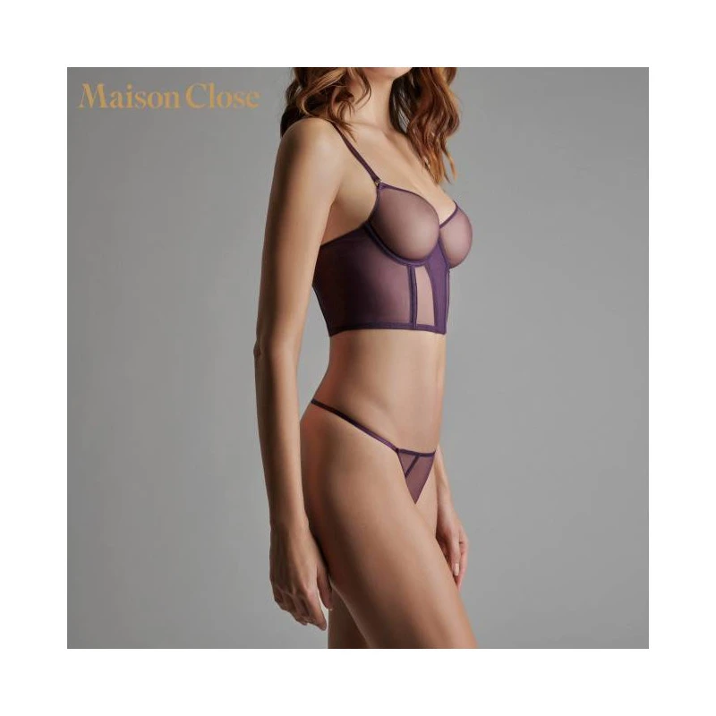 Soutien-gorge bustier avec armatures en tulle d’une transparence absolue. Bonnets moulés sans coutures qui épousent et galbent parfaitement la poitrine.