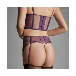 Tulle doublé devant et sur les côtés pour un contraste de transparence et d’opacité. Bustier structuré par des baleines verticales souples à l’avant et au dos. Fermeture au dos par un agrafage lisse et fin. Bretelles fines, amovibles et réglables.