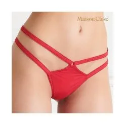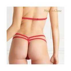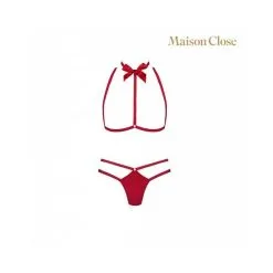 Ensemble Le Petit Secret de MAISON CLOSE, comprenant un harnais avec noeud amovible et un string lanières.