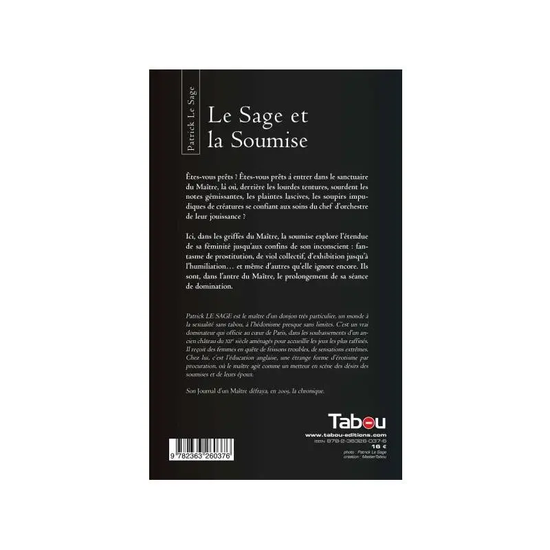 Patrick LE SAGE est le maĂ®tre d’un monde très particulier, un monde Ă la sexualitĂ© sans tabou, Ă l’hĂ©donisme presque sans limite. C’est un vrai dominateur qui officie au coeur de Paris, dans les soubassement d’un ancien château du XIIe siècle amĂ©nagĂ©s pour accueillir les jeux les plus rafinĂ©s. Il reçoit des femmes en quĂŞte de frissons troubles, de sensations extrĂŞmes. Chez lui, c’est « l’Ă©dducation anglaise », une Ă©trange forme d’Ă©rotisme par procuration, oĂą le maĂ®tre agit comme un metteur en scène des dĂ©sirs des soumises et de leurs Ă©poux.