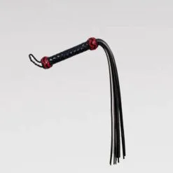 Le manche en cuir tressé rouge et noir ajoute une touche de sophistication et à l’ensemble. Il offre une prise en main confortable et sécurisée, permettant au de manier le martinet avec précision et contrôle pour créer des sensations sur mesure.