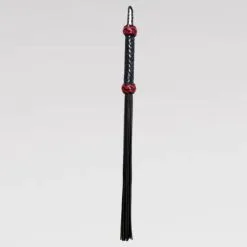 Le manche en cuir tressé rouge et noir ajoute une touche de sophistication et à l’ensemble. Il offre une prise en main confortable et sécurisée, permettant au de manier le martinet avec précision et contrôle pour créer des sensations sur mesure.