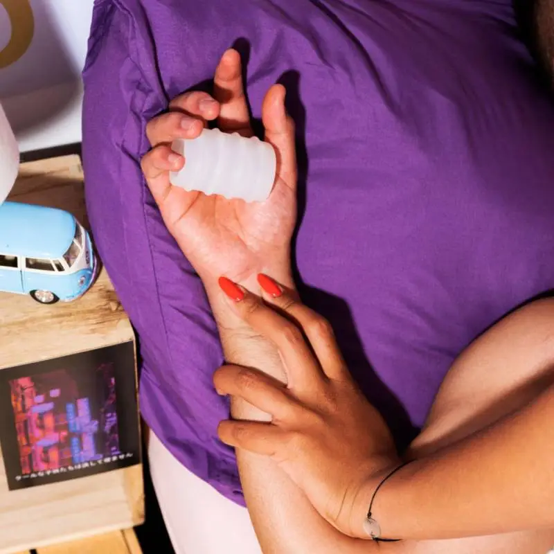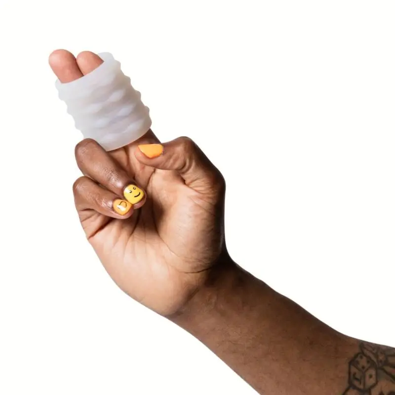 1. Appliquez un lubrifiant à base d’eau sur ROMP Mosh et placez-le à la base de votre pénis.