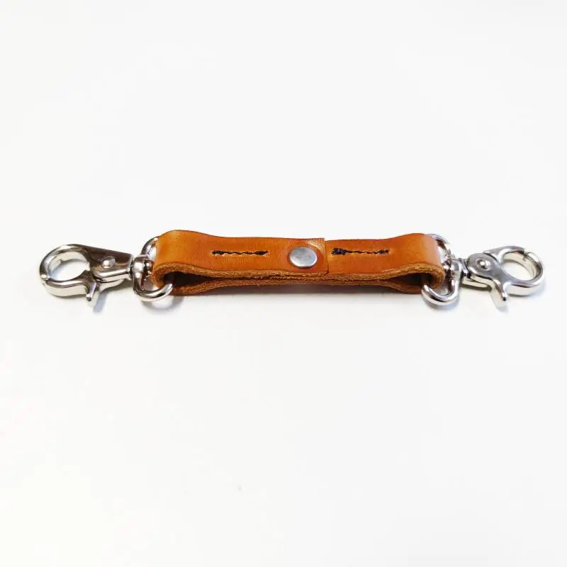 Cuir tannage végétal 2mm , teinture alcool, doublure agneau tannage minéral, boucle en inox , pontet en zamac.