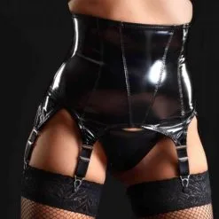 Mélangeant à la fois design rétro avec ses 6 jarretelles et sa taille haute, et modernité avec son beau vinyle noir.