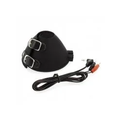 Parachute testicules noir en caoutchouc souple en forme de coupole se fermant par 2 boucles en acier fixées sur 2 petites sangles en cuir, accessoire adaptable sur les boîtiers d’electrostimulation