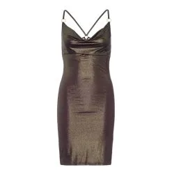 Cette magnifique robe dorée en satin est un véritable bijou de la mode qui allie élégance et séduction.